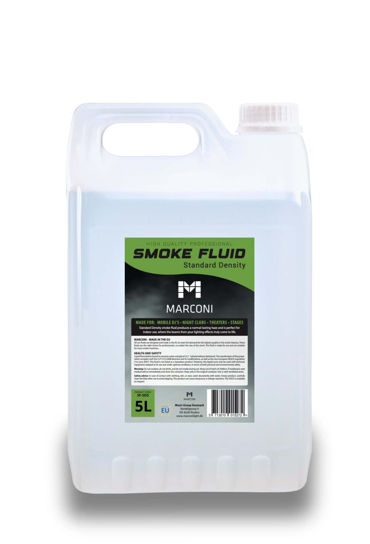 5 liter CE-godkjent Marconi røykvæske med en standard ""tetthet"" – altså en medium / normal / standard tykk røyk.
