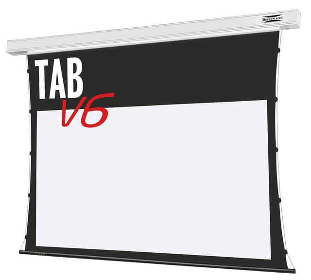 The tab tension mechanism provides you with the most even surface available on a cassette based screen solution. The Tab V6 also features a vast selection of integrated control options such as a cordless 12V trigger and RS232, a brand new 6. generation reference quality D65 tuned screen fabric in either grey or white as well as an updated, sleek cassette design available in both black and white.