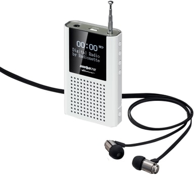 Radionette FM/DAB+ REXE1WH15E er en lommeradio som du enkelt kan ta med deg. Radioen har innebygde batterier slik at du kan lytte til dine radiofavoritter enten du er i hagen eller gjør husarbeid rundt i huset.