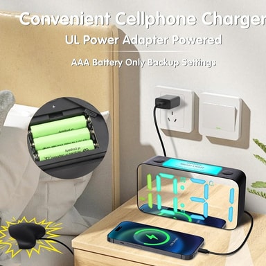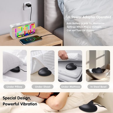 7"" speilskjerm vibrerende vekkerklokke med Bed Shaker RGB nattlys for tunge soveplasser - svart [Hjerteformet vibrerende vekkerklokke med 3 vekkemoduser] Du vil bli overlykkelig med vekkerklokken med sengerist kombinert med 3 våkningsmoduser - sterk