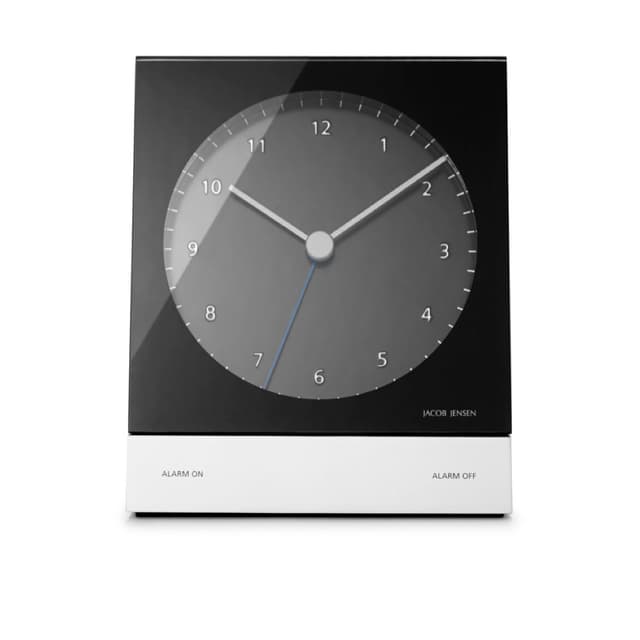 Jacob jensen alarmklokker er lyse og elegante og har en god størrelse for nattbordet. I tillegg er de enkle å betjene og kommer med et stille urverk og et vakkert opplyst display, som er lett å lese, selv i mørket. Alarmen lyder med økende intensitet, og den har en ubegrenset snooze-funksjon: hver gang du trykker på knappen, blir alarmen utsatt i åtte minutter.