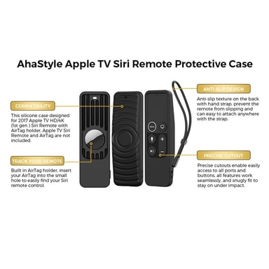 AHASTYLE PT175 silikondeksel til Apple TV 4K (4. generasjon / 5. generasjon) / TV HD / AirTag, 2-i-1 hudvennlig beskyttelsesdeksel - svart