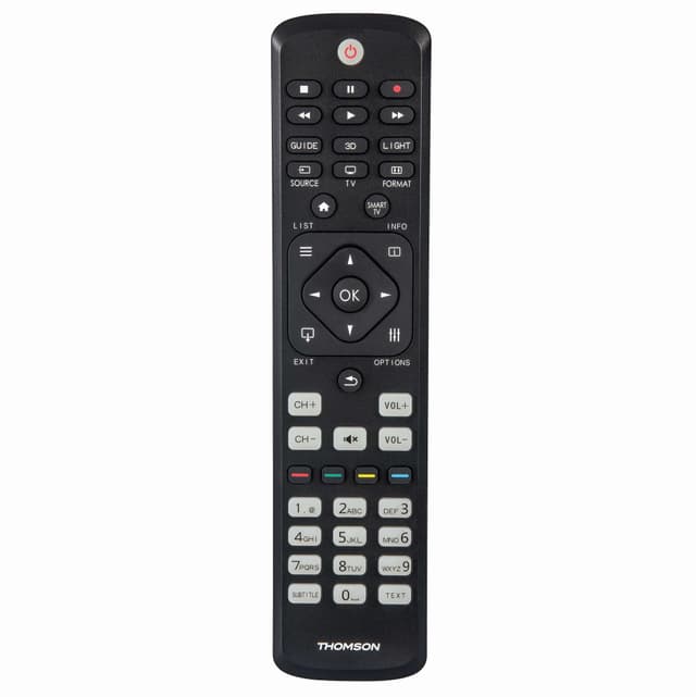 Thomson tv-fjernkontroll """"erstatter original"""". Erstatter orginalkontrollen . Forprogrammert . Læringsfunksjon for forbedret funksjonalitet. Simple mode-modus forhindrer utilsiktede endringerdenne fjernkontrollen erstatter den vanlige fjernkontrollen og er klar til umiddelbar bruk (forhåndsprogrammert). Den er tilgjengelig for samsung, lg, sony, philips og panasonic tv. Fjernkontrollen har spesielle knapper for merkespesifikke funksjoner, og har kodeminnet for å holde innstillingene lagret når du bytter batteri. Fjernkontrollen har også opplyste knapper for bruk i svakt lys. 2x aaa batterier inkludert. Simple mode-modus (hotell / seniorer) gjør det mulig å endre bare: på/av volum og mute kanal +/- av-inngang exit-meny tv