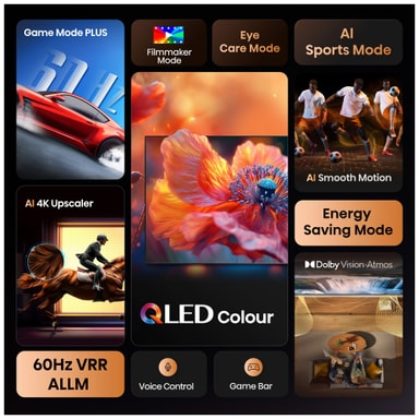 Forbedre spillopplevelsen med Game Mode PLUS og integrert game bar som kontrollsenter. VRR og ALLM reduserer input-lag og eliminerer screen-tearing. Opplev jevn gaming på en TV med god pris!