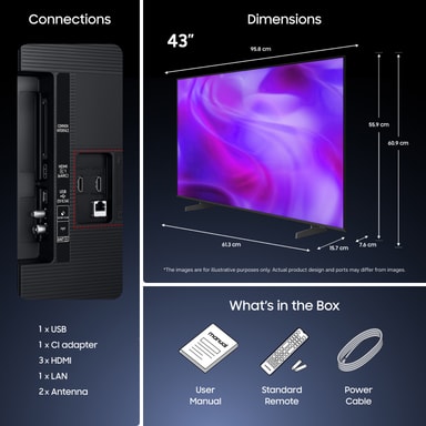 Samsung 43" U7025H Crystal UHD 4K Smart-TV gir skarp 4K-oppløsning med Crystal Processor-oppskalering. Den er ustytr med Vision AI Companion, en tynn metallramme, og One UI Tizen OS. Inkluderer Gaming Hub og SmartThings for sømløs kontroll.Les mer om produktet
