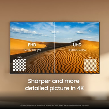 Samsung U7025H TV er drevet av Crystal Processor 4K. Denne motoren bruker avansert 4K Upscaling for å tydeliggjøre innhold med lav oppløsning og PurColor-teknologi for å optimalisere fargegjengivelsen, noe som sikrer et naturtro bilde i høy oppløsning for alt du ser på.