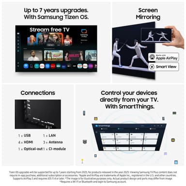 Hvis du henger TV-en på veggen og bruker en dekorativ kabelskjuler får du et veldig pent, ryddig og plassbesparende TV-oppsett. Pass på at veggfestet tåler vekten av TV-en du velger. Hvis du scroller lenger ned på siden kan du se forslag til veggfeste til denne TV-en