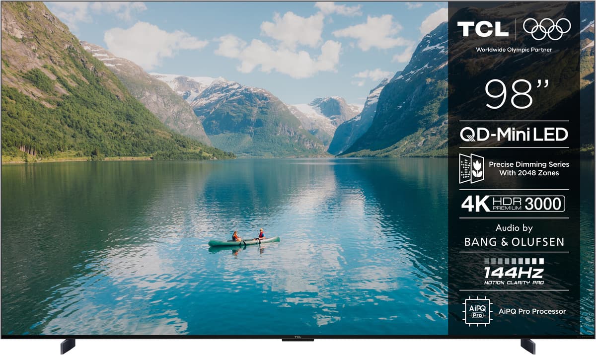 TCL Premium MQLED85K QD‑Mini LED med opptil 2048 dimmesoner* er et visuelt mesterverk som leverer forbløffende levende bilder med naturtro farger og ultrahøy kontrast. Den byr også på høyere topplysstyrke, bredere fargespekter, større skjermstørrelser og lengre levetid – en ledende bildeteknologi.