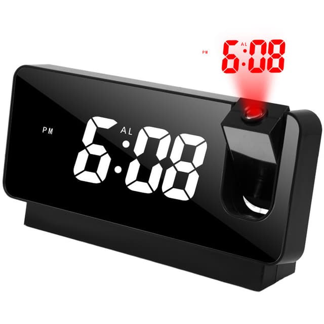 Digital vekkerklokke med speiloverflate, ulike lysstyrker og RGB-farger