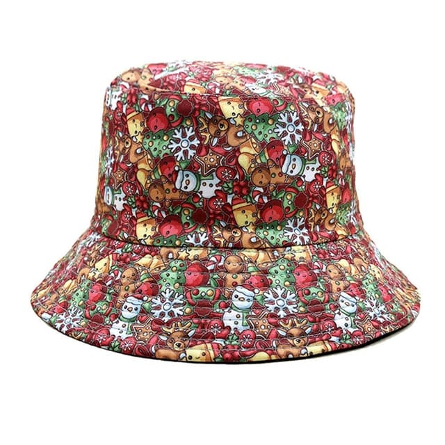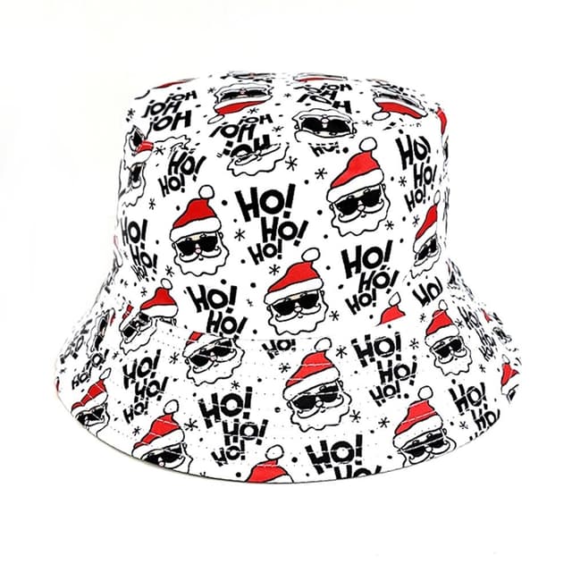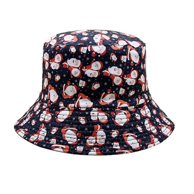 Julenissens sammenleggbare bøttehatt Vendbar fiskerlue Hodeplagghatt Julemotiv