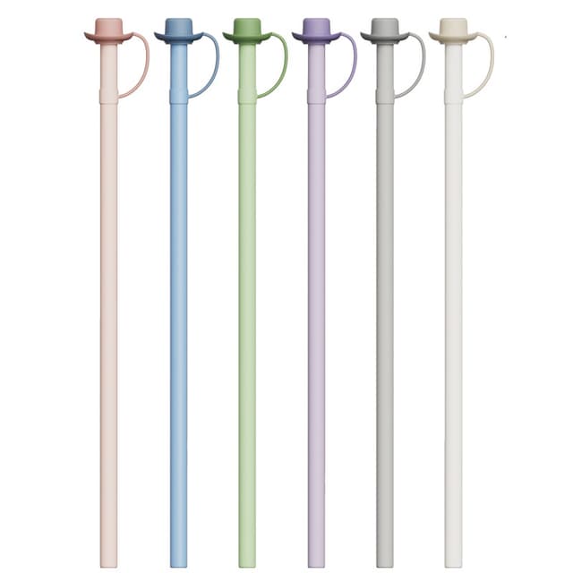 Silikonsugerør med lokk og 1 rengjøringsbørste, 6-pakning