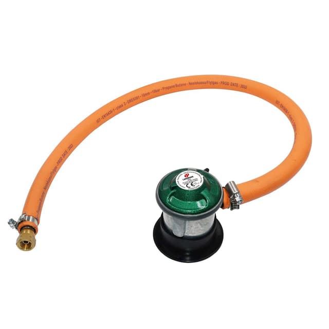Kjøp gassregulator og slangeHvis du har en gassgrill, er det viktig å sjekke slangen og gassregulatoren før den nye sesongen. Gummislangen svekkes over tid - og dersom den lekker kan grillen ikke brukes. Skift ut slange og regulator, og grillen er klar til bruk igjen.