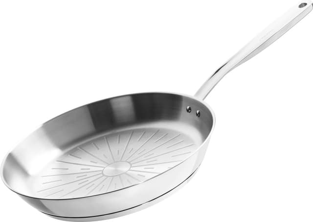 En god vask er viktig, og glem ikke at det gjelder hele stekepannen. Rester av fett på undersiden svir seg lett, og kan skade både pannen og koketoppen. Stekepanner med belegg skal vaskes for hånd med varmt vann og mild såpe. Bruk oppvaskbørste eller svamp.