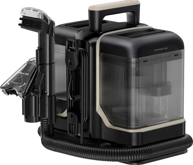 Tepperenseren sørger for at tekstiloverflatene i hjemmet ditt blir rene ved hjelp av vaskemiddel som sprayes dypt inn i fibrene og løser opp og fjerner smuss. Med en dedikert tepperenser får du effektiv rengjøring av tepper, møbler og bilseter ved hjelp av spray- og sugeteknologi. Denne metoden når helt ned i fibrene og gir en dyprens. Resultatet? Borte er hår og uønsket lukt. Perfekt for allergikere og dyreelskere. I tillegg fungerer den også som en grovstøvsuger.