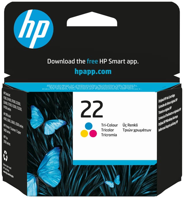 Som ny - Komplett i originalemballasjeHP blekkpatron 22 Cyan Magenta Gul