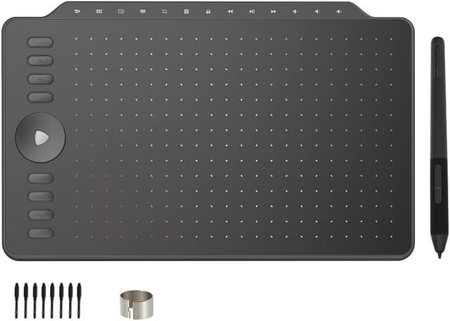 Profesjonelt grafisk tegneblokk med 12+16 programmeringsknapper. Kompatibel med Windows Mac Android og er batterifri.