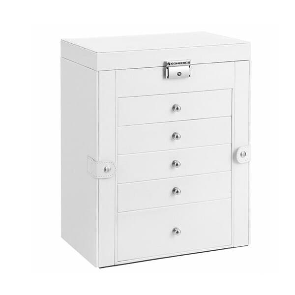 Smykkeskrin med 5 skuffer og speil - Hvit
