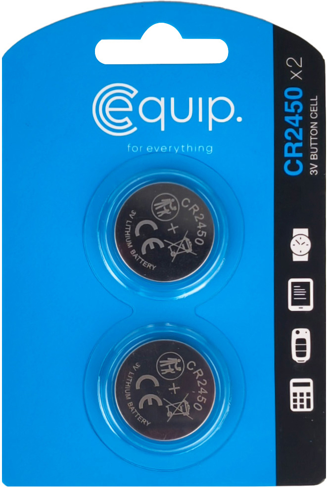 Equip CR2450 batteri er kompakte, høyenergiceller som er ideelle for enheter som klokker, fjernkontroller, sensorer og medisinske verktøy. De gir jevn strøm, har lang holdbarhet (opptil 10 år), fungerer godt i ulike temperaturer og har lav selvutlading.Les mer om produktet