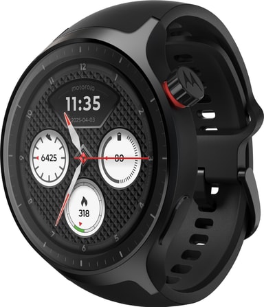 Hold deg aktiv, stilig og i kontroll med Motorola Watch smartklokke 47 mm designet for en dynamisk livsstil. Denne smartklokken har en levende 1,43" OLED-skjerm, innebygd GPS med to frekvenser og velværesporing for å holde deg på toppen av treningsmålene dine. Med flere sporingsmoduser, smartvarsler og et lett og komfortabelt design er den den perfekte følgesvenn for treningsøkter og hverdagsbruk.