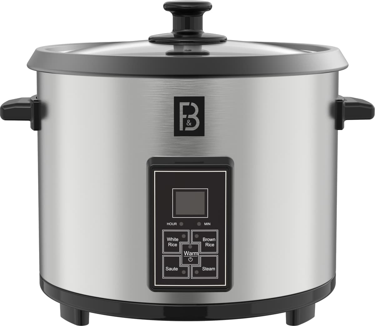 F&B riskoker 73129 på 1,8 liter har LED-display, lokk i herdet glass og håndtak med kjølig berøring. Den kan tilberede, dampe, sautere og holde maten varm i opptil 12 timer. Non-stick-skålen er enkel å rengjøre. Skje, målebeger og dampkoker følger med.Les mer om produktet