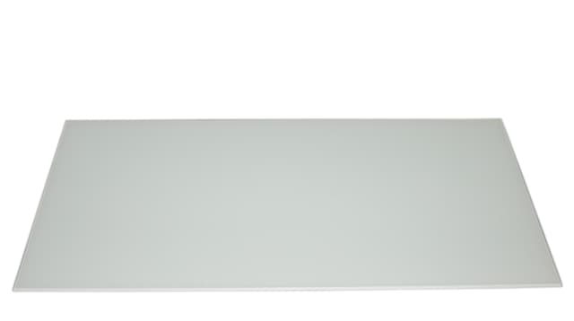 Firkantet Mål: 800x400 mm Farge: Frostet I 4 mm herdet glass Brukes f.eks. ved komfyr eller vask Limes fast med klar silikon, påfør lim i loddrette baner på glassplatens bakside, dermed sikrer man ventilasjon