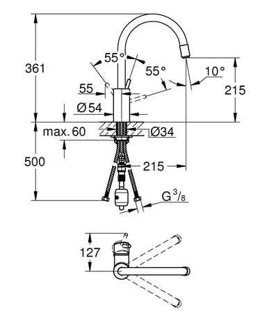 Høy tut gir enkel fylling av store kjeler og bøtter. Vendingsgraden er på 360° noe som gir meget enkel håndtering. Få maksimal komfort med minimal innsats. Fleksibiliteten er noe du garantert vil verdsette om du har en vask med to kummer. Uttrekksdusjen gir enkel vasking og skylling.