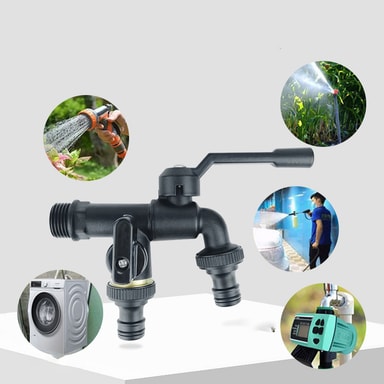 Konstruksjon av høy kvalitet: Med et fortykket ventilhus er denne kranen motstandsdyktig mot sollys, temperaturer under frysepunktet og høy varme, noe som sikrer pålitelig ytelse selv under ekstreme forhold. Den gjengede installasjonstypen og en diameter på 15 mm i ventilsetene bidrar ytterligere til stabiliteten.