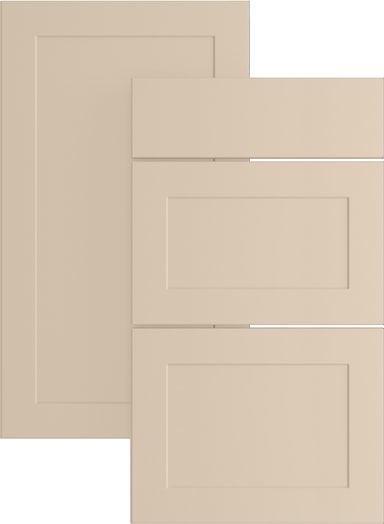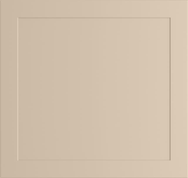 Med sin subtile innramming, fløyelsmatte overflate og rene proporsjoner tilfører Epoq Canvas Soft Beige dørfront et stille raffinement til ethvert kjøkken. Designet fungerer sømløst på tvers av stiler, fra tidløs landlig sjarm til elegante moderne interiør. For en mer kontemporær estetikk kan du vurdere å kombinere den med søylepaneler på en kjøkkenøy eller integrere den med underskapsfronter fra Edge contour-serien. Den er laget i ett stykke solid MDF med et frest midtpanel.