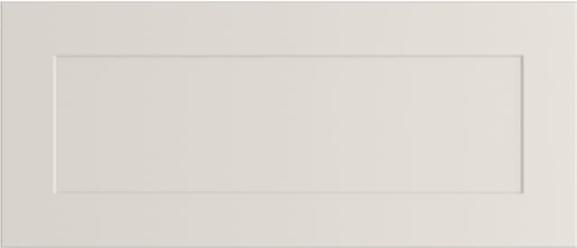 Med sin subtile innramming, fløyelsmatte overflate og rene proporsjoner tilfører Epoq Canvas Warm White skuffepanel et stille raffinement til ethvert kjøkken. Designet fungerer sømløst på tvers av stiler, fra tidløs landlig sjarm til elegante moderne interiør. For en mer moderne estetikk kan du vurdere å kombinere den med søylepaneler på en kjøkkenøy eller integrere den med underskapsfronter fra Edge contour-serien. Den er laget i ett stykke MDF med et frest midtpanel, og har en ytre ramme på 55 mm og en tykkelse på 19 mm.