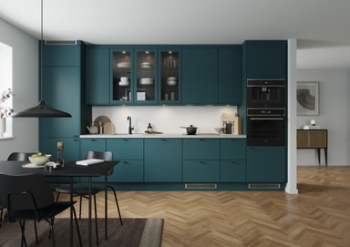 Trend Emerald Green er en deilig mørk grønnfarge som tatt rett ut av skogen. Stilmessig kan Emerald Green fint kombineres med sort- og grålakkerte Trend kjøkken dersom du ønsker en kontrast.