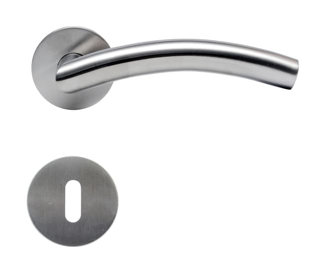 Med klikk-rosett: Ø4 mm. B-håndtak design Ø19 mm Kvalitet: 201 rustfritt stål Inkl. 2 stk. nøkkelskilt og komplett universelt monteringssett. Torx skruer Leveres i salgsdisplay med 10 sett