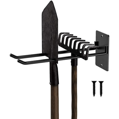 Allsidig oppbevaringsløsning: Vegghengeren er laget av robust jern og kan holde flere forskjellige hageredskaper som spader, river, koster, slanger osv. Veggbraketten er en hendig og praktisk oppbevaring for hageredskapene dine.