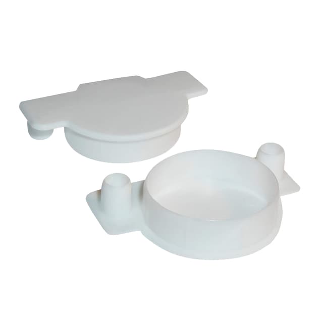 Blindplugg for hengslehull. Finnes i tre farger; hvit, sort og grå.
