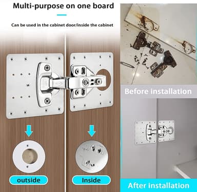Allsidige reparasjoner: Monteringsplaten kan brukes til å feste hengsler og reparere møbler. Godt egnet for festing av tresofaer, trebord, stoler, tresenger og lignende.
