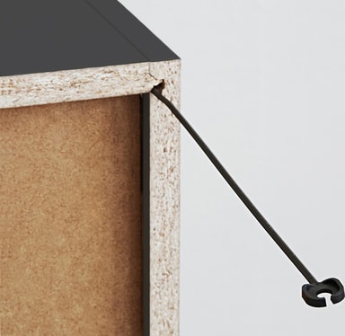 For å montere skapene setter du «tungen» inn i sporet og pinnen inn i den lille åpningen. Hvis du trenger å demontere rammen, kan du bruke det medfølgende verktøyet til å løsne sidene fra hverandre.