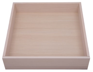 Skuffen finnes i to høyder og tre ulike bredder for å passe skap med en bredde på 40, 50 eller 60 cm. Sidene er i hvit ask heltre, og bunnen er i foliert MDF. Bruk 160° hengsler for at skuffen skal kunne åpnes helt. Skuffen har nedsenkede hjørner.