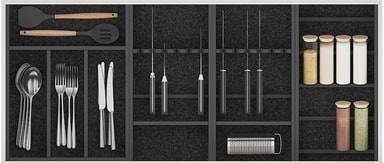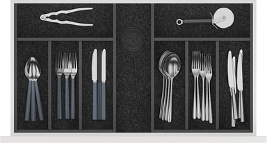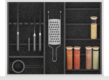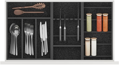 Hold bestikket ditt tilgjengelig og organisert med Epoq Flex innfelt bestikkbrett 40 cm. Med sitt stilrene utseende, funksjonelle design og rikelig med plass til forskjellig bestikk er dette brettet et smart valg for det moderne kjøkkenet. Dette slitesterke kjøkkentilbehøret er laget av aluminium og passer til skuffer som har en dybde på 40 cm.