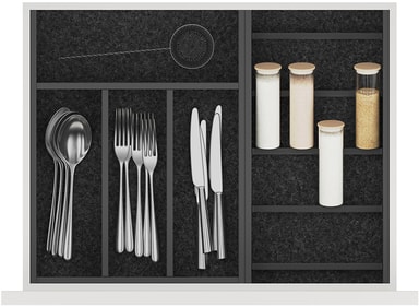 Epoq Flex innfelt bestikkbrett 40 er et perfekt tilbehør for deg som liker å holde orden i skuffene dine. Dette slitesterke bestikkbrettet har et justerbart design, er laget av aluminium og passer til skuffer med dybde på 40 cm.Les mer om produktet