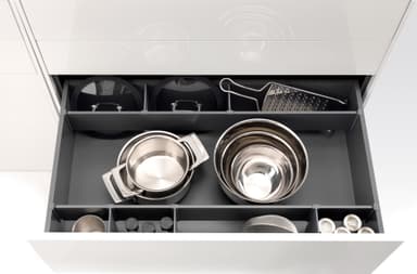 Hold kjøkkenskuffene organiserte og oversiktlige med Epoq skuffeavdeler Tavinea med to flyttbare sider. Passer 60 cm brede skuffer.Les mer om produktet