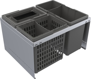 Bytt ut den gamle søppelbøtten på kjøkkenet med et moderne Epoq XP Cube 600 kildesorteringssett. Tre romslige beholdere inkludert en ventilert matavfallsbeholder gir optimal plass for kildesortering. Du kan enkelt installere beholderne ved å bruke en 3M-tape eller ved å feste den til fronten eller siden av skapet.