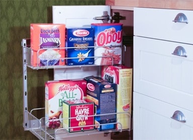 Uttrekk for underskap. Kan henges både til høyre og til venstre. Passer 30 cm eller bredere skap eller skap under kjøkkenvask. Uttrekket har to kurver, som kan flyttes i høyden og tas bort.