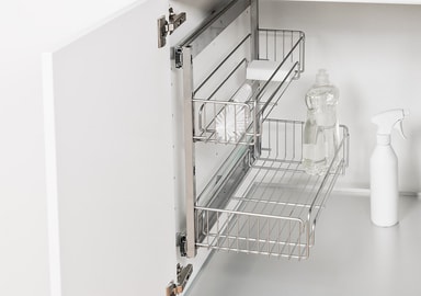 Uttrekk for underskap. Kan henges både til høyre og til venstre. Passer 30 cm eller bredere skap eller skap under kjøkkenvask. Uttrekket har to kurver, som kan flyttes i høyden og tas bort.Les mer om produktet