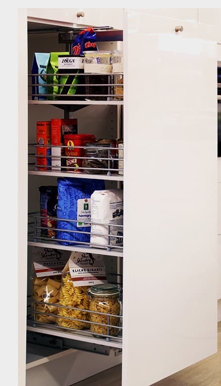 Høyskapsuttrekk: 4 stk. skuffer med bunn à 40 cm. Kan fås i 60 cm.Les mer om produktet