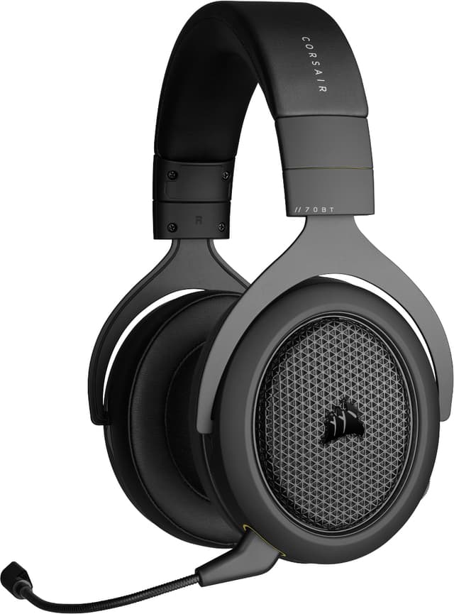 Med Corsair HS70 gaming headset kan du dykke inn i neste fantasiverden, takket være trådløs bruk, opptil 30 timer brukstid og kompatibilitet med flere plattformer med medfølgende USB, 3,5 mm jack-kontakt og Bluetooth 5.0. Headsettet er også kompatibel med Windows Sonic-surroundlyd og har en avtagbar, unidireksjonell, støydempende mikrofon.