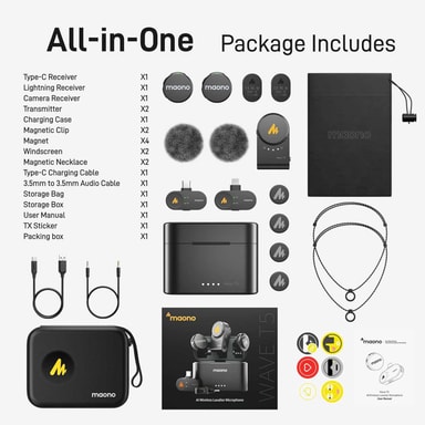 Maono PA3 mini trådløs mikrofon er en liten, brukervennlig trådløs mikrofon laget for klare stemmeopptak på farten. Den fanger opp lyd i 48kHz/16bit kvalitet og bruker KI-støyreduksjon for å holde lyden ren, selv på travle steder. Med sitt bærbare ladeetui og pålitelig Lightning-tilkobling for iPhone, er den perfekt til intervjuer, vlogger og mobilvideoer.