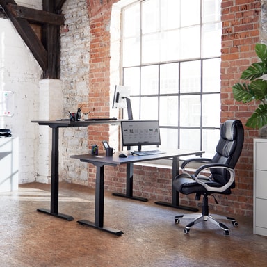 Innrett arbeidsområdet ditt etter behovene dine med det fleksible bordunderstellet fra tectake. De kraftige, men likevel støysvake motorene gjør det mulig med en trinnløs innstilling av høyden. Selv når det er trukket helt ut, forblir den robuste konstruksjonen stabil. Bevegelsene er så myke at innholdet i en kaffekopp som er satt på bordet følger med nærmest uten å bevege på seg. Modellen kan også stilles inn i bredden og tilpasses til forholdene i rommet. Takket være den solide konstruksjonen trenger ikke understellet noen tverrstiver og gir dermed maksimalt med rom for bena. Finn din ideelle arbeidsstilling med det justerbare bordunderstellet fra tectake.