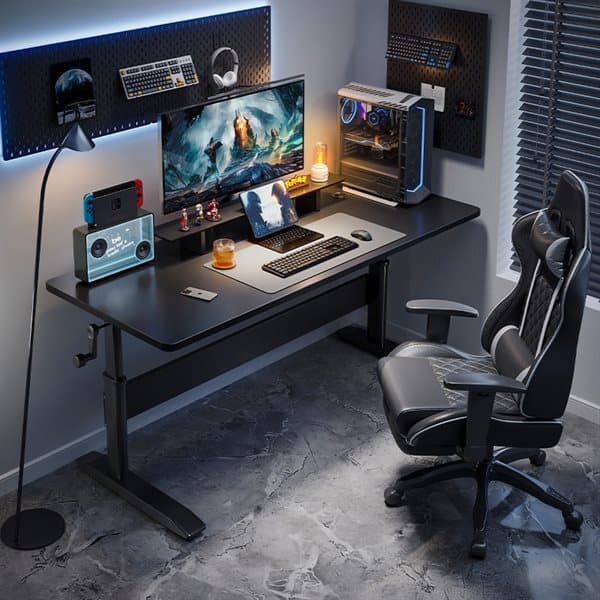 Oppgrader arbeidsplassen din med dette ergonomiske hev- og senkbare skrivebordet, designet for å fremme god helse og komfort. Den justerbare høyden mellom 60 og 85 cm lar deg tilpasse arbeidsstillingen din og redusere belastning på rygg og nakke. Skrivebordet kombinerer solid stålramme og en slitesterk MDF-bordplate for å sikre stabilitet og holdbarhet, ideelt for daglig bruk.