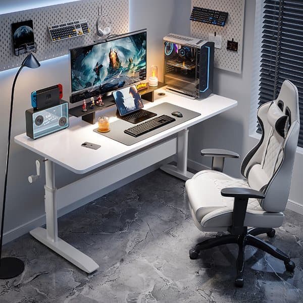 Den sjenerøse arbeidsflaten på 140 x 60 cm gir rikelig med plass til datamaskiner, skjermer og annet arbeidsutstyr, noe som gjør det enkelt å holde arbeidsområdet organisert og effektivt.
