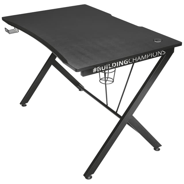 Gamingpulten har en robust stålramme og en 18 mm tykk MDF-bordplate som sikrer stabilitet og god støtte for ditt gamingutstyr. Rammen har høydejusterbare bein slik at pulten kan holdes helt ben, selv på skeive gulv.