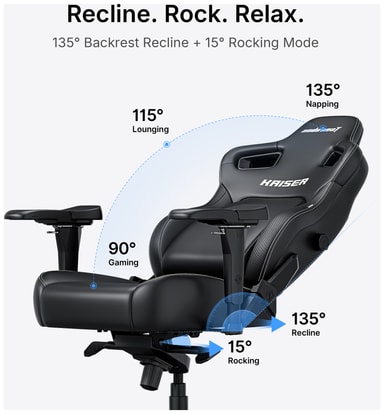 Med 135° tilbakelening og 15° vippefunksjon lar AndaSeat Kaiser Series 4 gamingstol deg slappe av i maksimal komfort. Disse funksjonene gjør at du kan finne den perfekte posisjonen for spilling, lesing eller bare for å ta en pause.